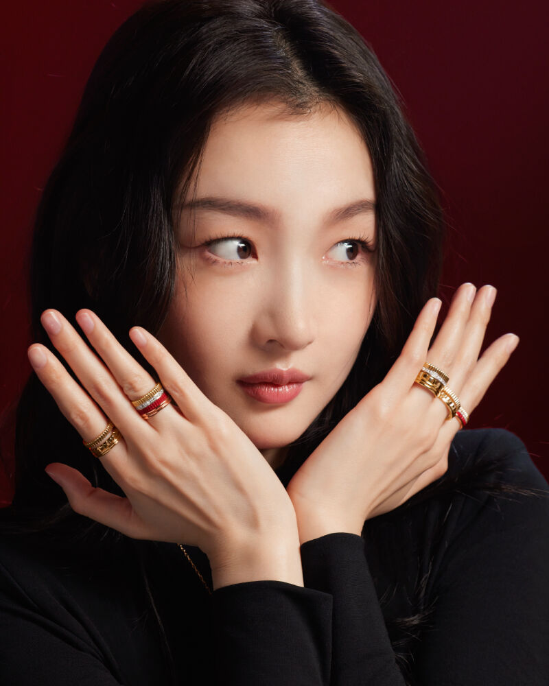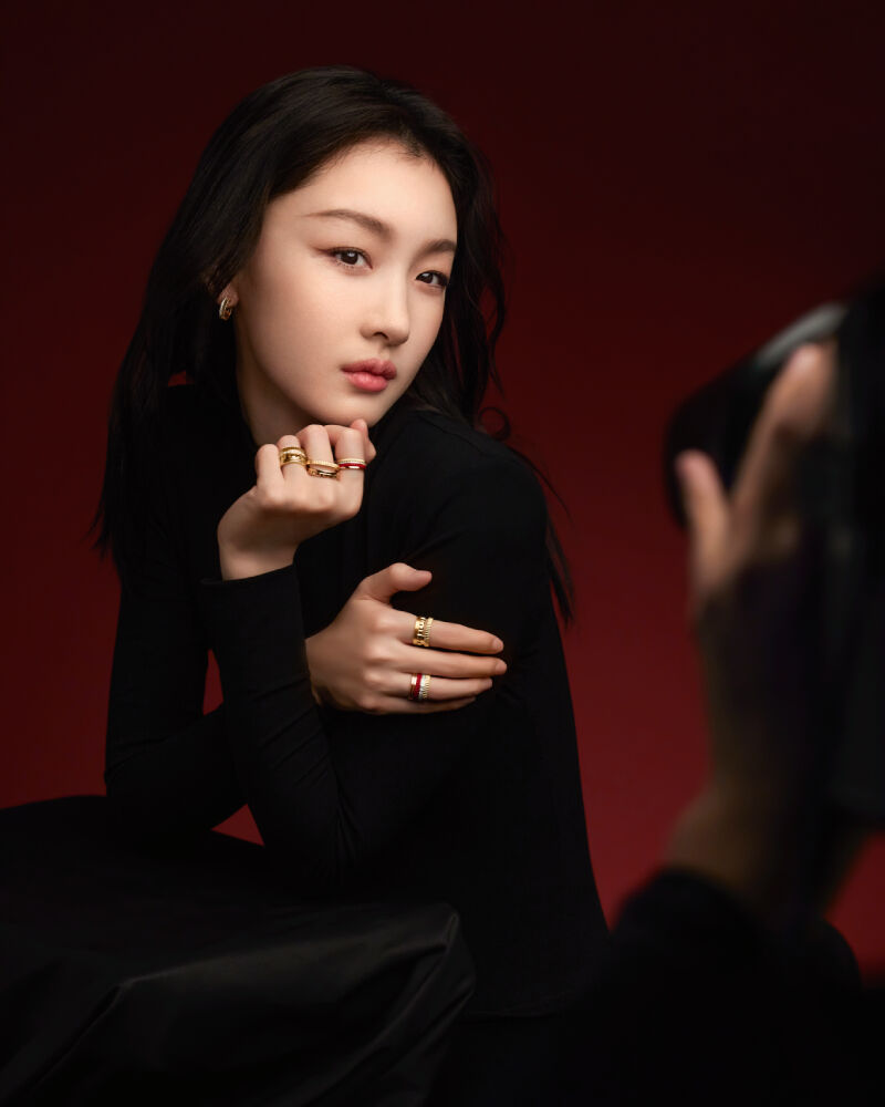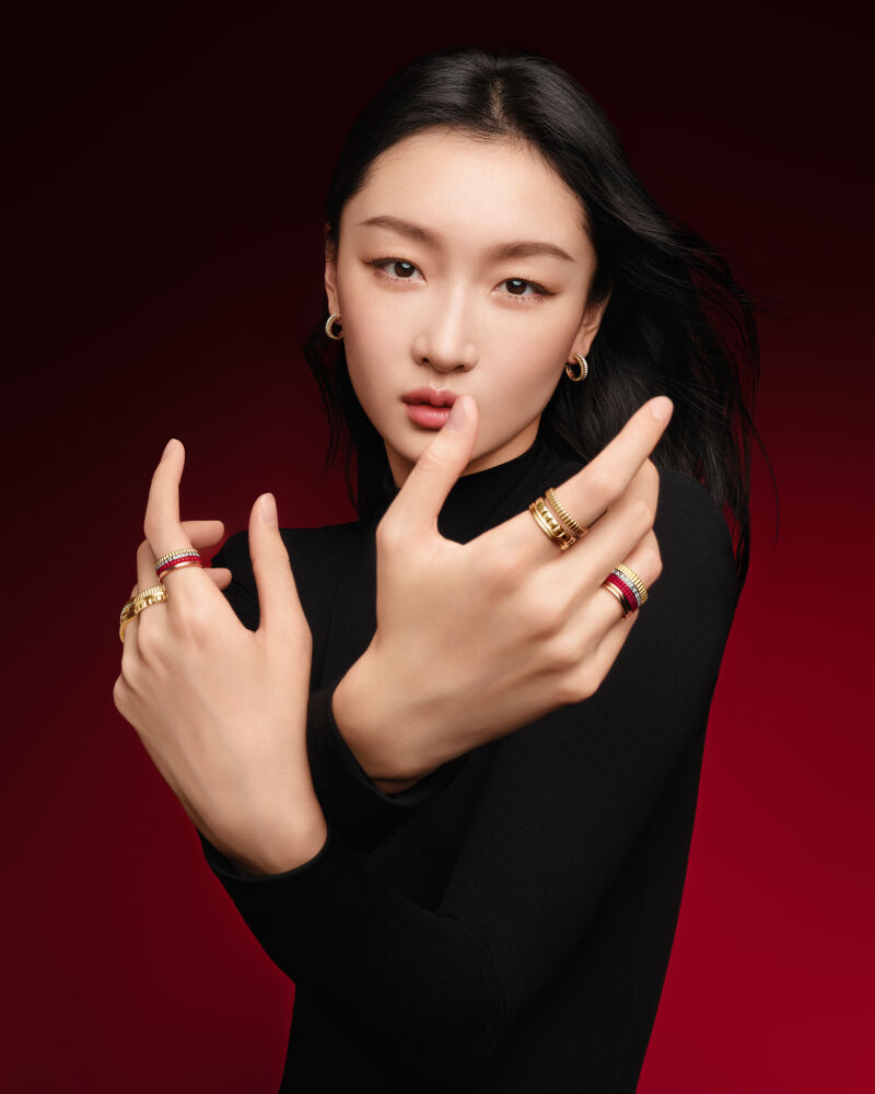 全球品牌代言人周冬雨用光影绘就龙之意象。Quatre系列叠戴指间,寄予新年自信能量。