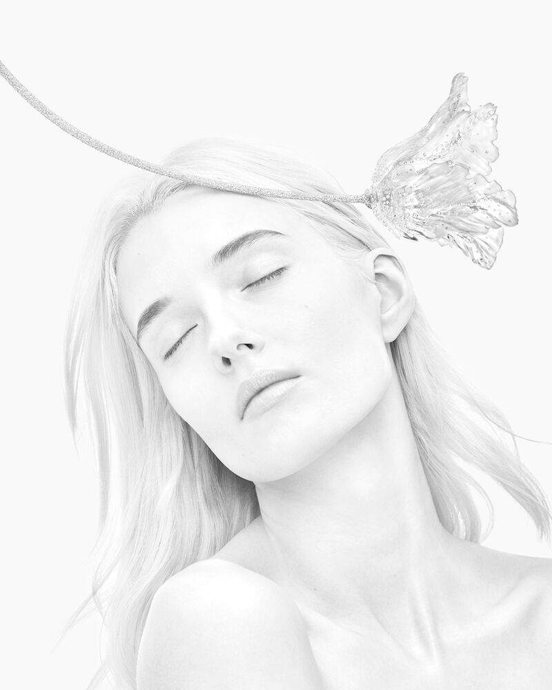 为再现奶蓟草的野性之美,尖刺状花冠采用植物基树脂材质,利用超高精度3D打印技术打造,成就一项高级珠宝行业前所未见的突破性技术创举。为实现此项创新,世家工匠们面临严峻挑战——缺失金属结构支撑的花朵根本无法进行钻石镶嵌。为了突破这一局限,工匠开创名为“couture”的全新高级定制镶嵌工艺,将每颗钻石如针线般缝入奶蓟草细胞结构中。采用白金打造的修长花茎、尖刺与叶片密镶钻石后,覆以纤薄白色陶瓷涂层。整组作品栖身于一只复合材料制成的花樽中。
