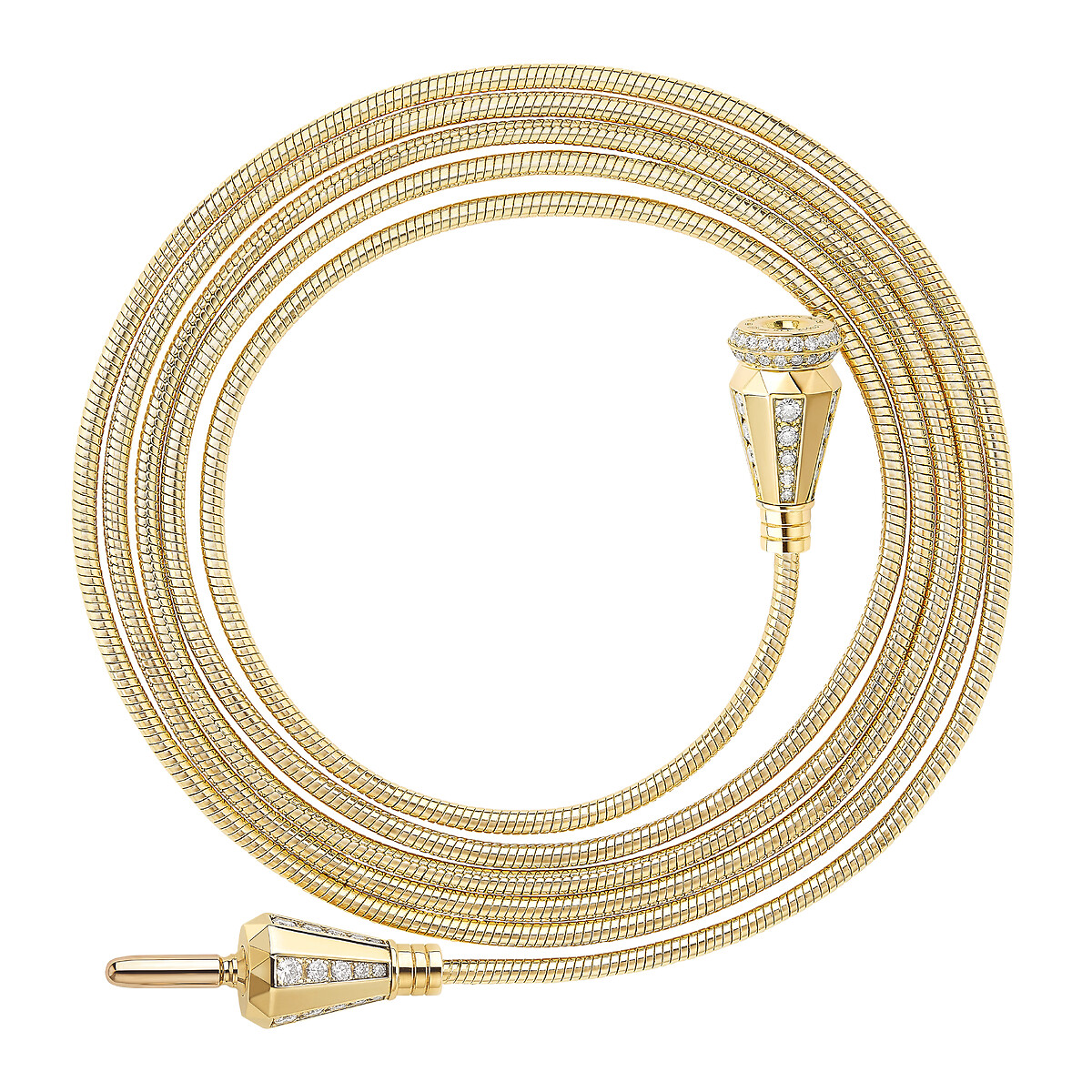 2019年,Jack de Boucheron系列焕新演绎珠宝佩戴方式,将非凡创意融汇于别致珠宝作品之中。它既不同于传统手链,亦有别于普通项链,其极具几何美感的隐藏搭扣从电线插孔中汲取灵感,低调雅致。