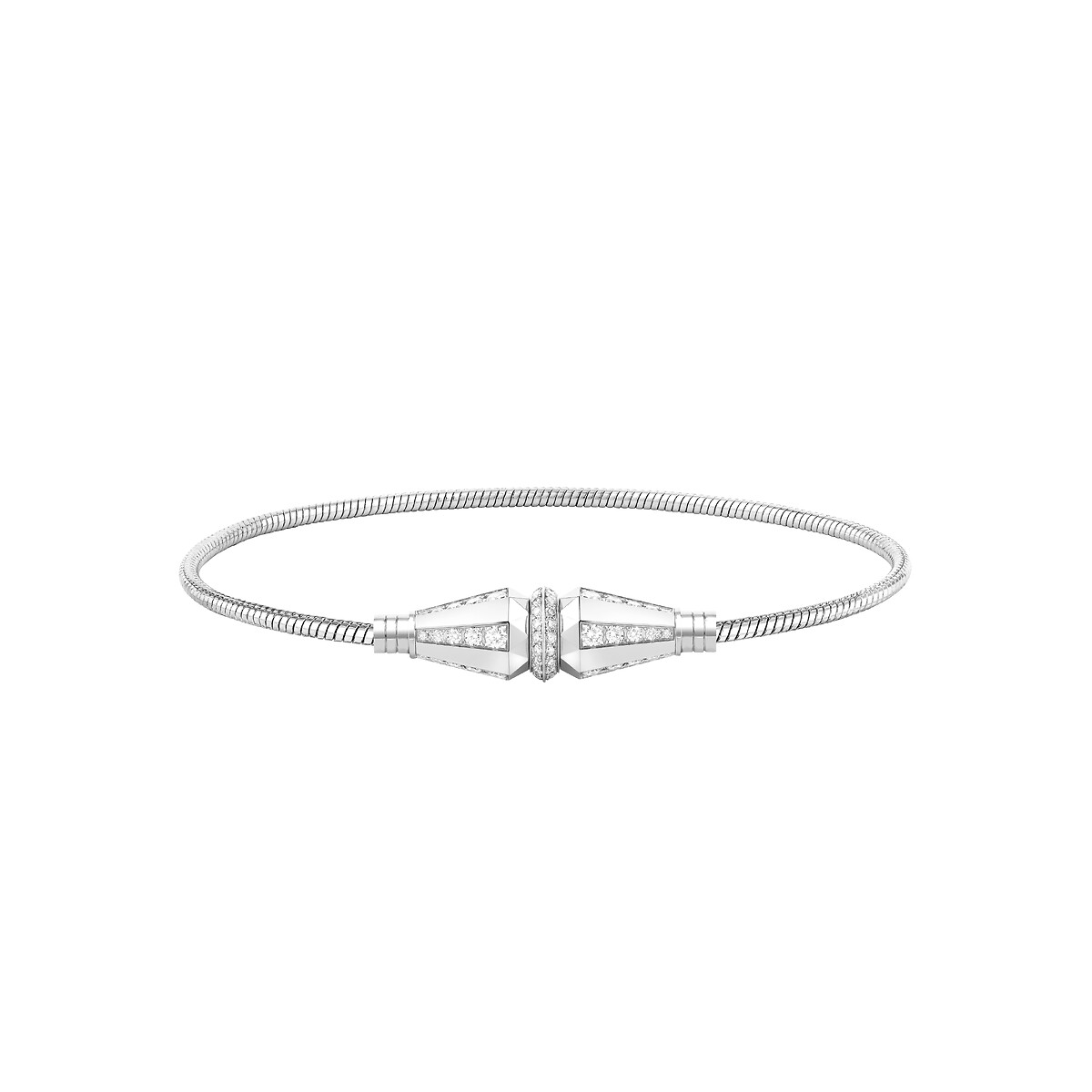 2019年,Jack de Boucheron系列焕新演绎珠宝佩戴方式,将非凡创意融汇于别致珠宝作品之中。它既不同于传统手链,亦有别于普通项链,其极具几何美感的隐藏搭扣从电线插孔中汲取灵感,低调雅致。