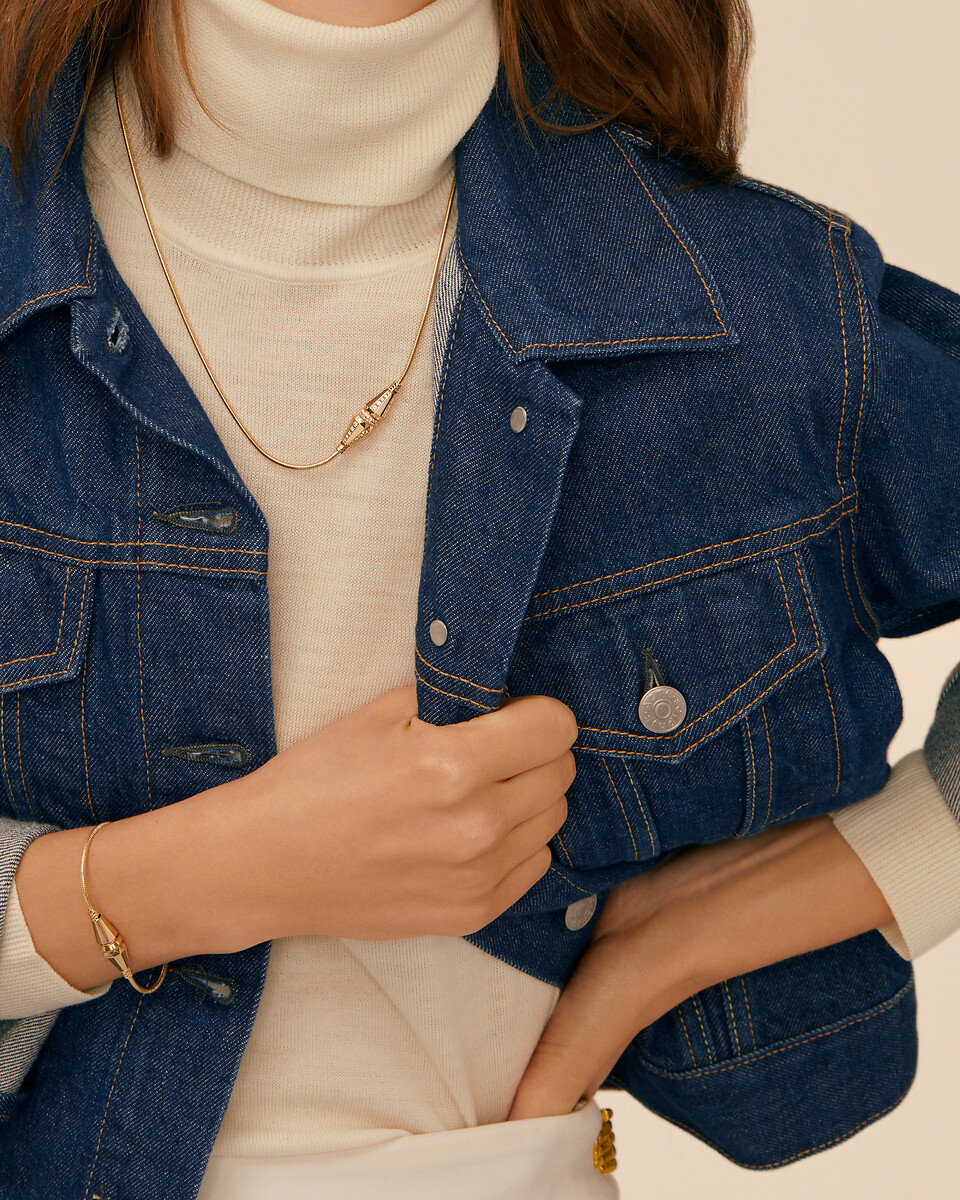 2019年,Jack de Boucheron系列将女性置于创意核心。 几何搭扣自电线插孔汲取灵感,巧妙隐藏连接处。 可打造丰富搭配组合,与项链、手链、腰带等相得益彰,任您施展创意!