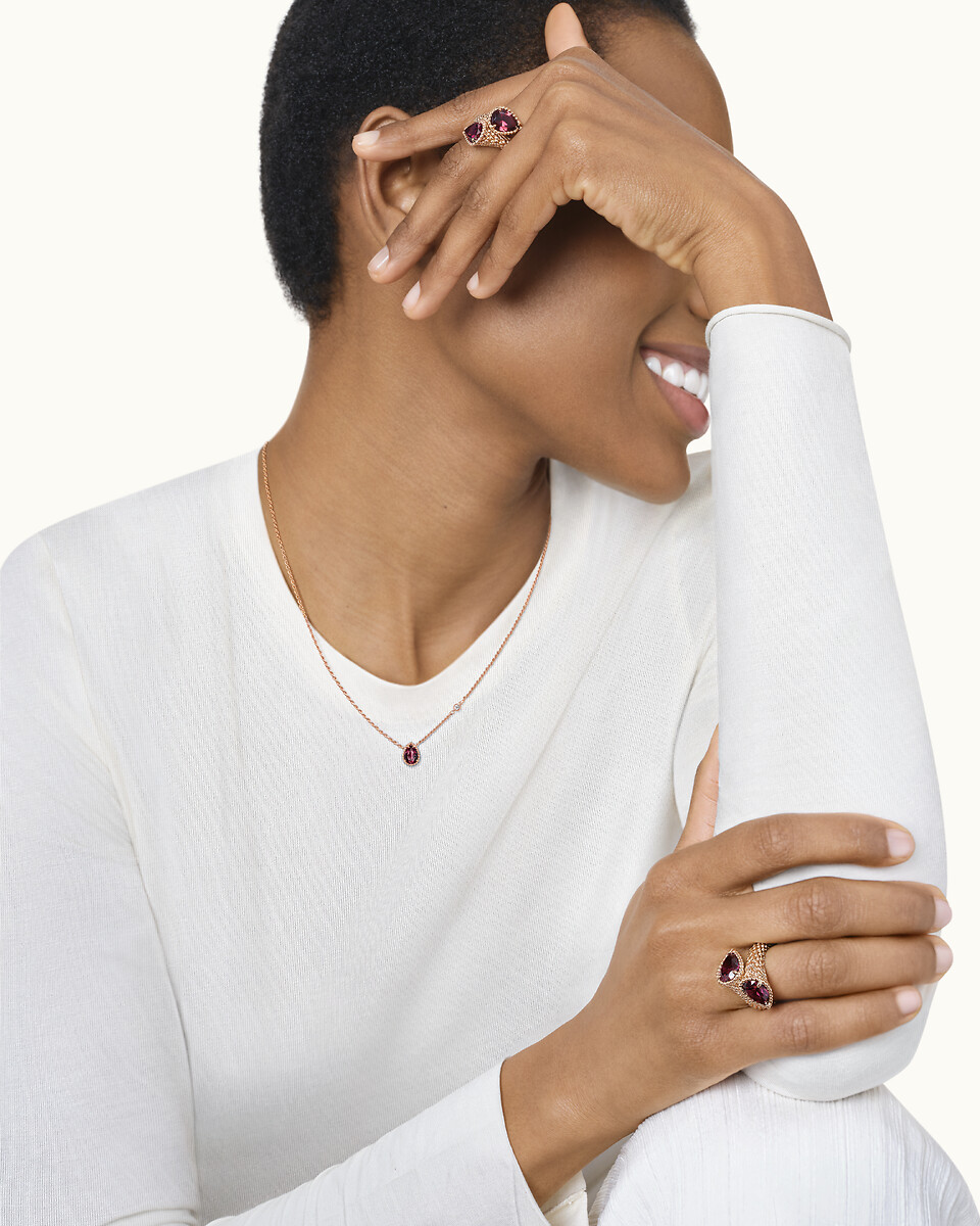 Serpent Bohème系列红玉髓作品释放热情,令人心动。为日常服饰增添一抹亮色,更显从容自信。