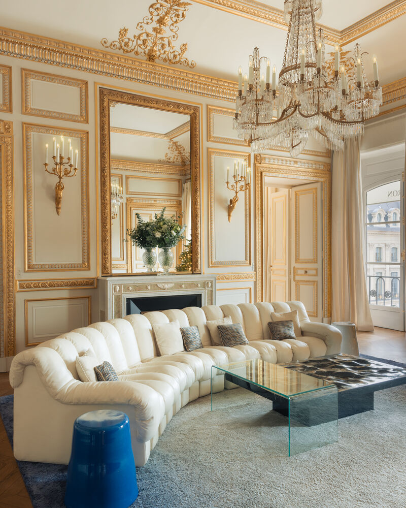 Nocé公馆的翻修设计经过深思熟虑的调查与研究。我们选择拆除现代天花板,并利用档案照片再现当年奢华装饰。如今,Salon des Fiancés呈现浓郁的古典主义风格与大胆现代美学的鲜明对比,这令人不由感叹,无论时代与风格如何流转,爱始终值得以美好赞颂。