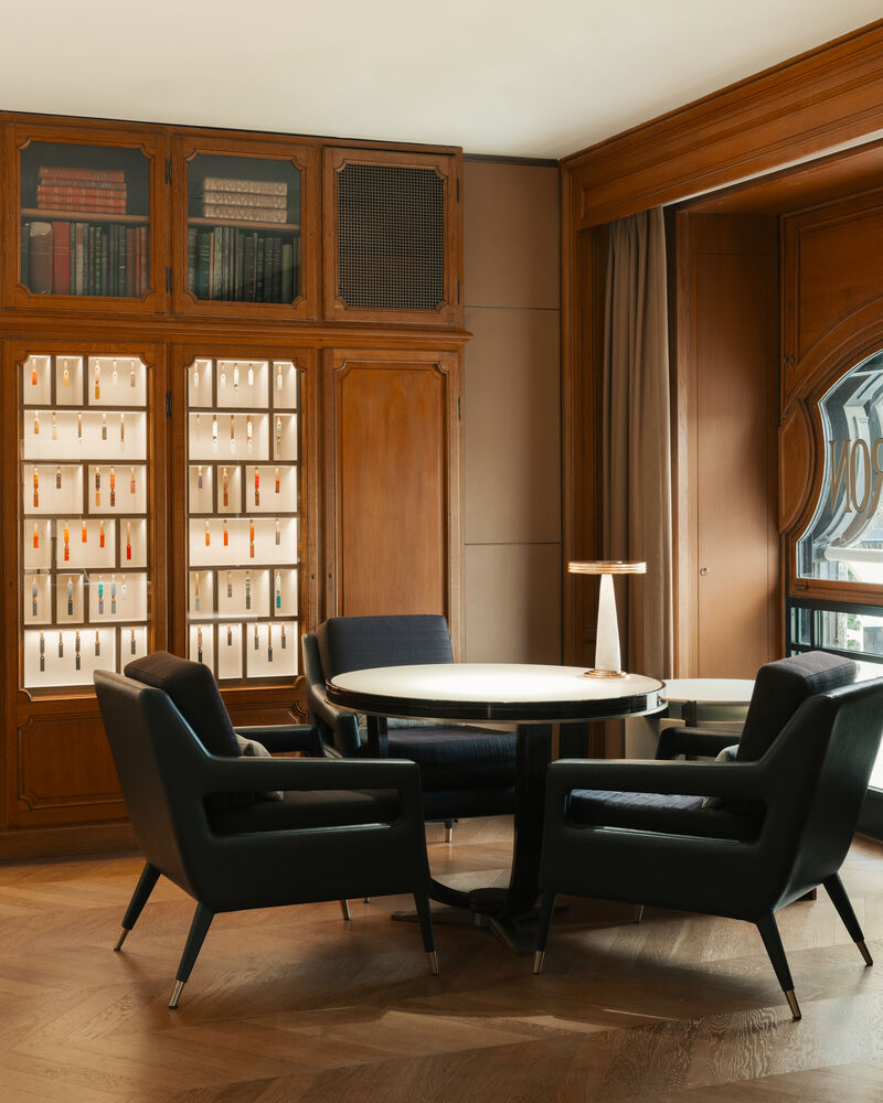 从卡斯堤里安伯爵夫人(Castiglione)的寓所到设计工作室仅有一步之遥。1918年,菲德烈克•宝诗龙(Frédéric Boucheron)将这两个空间打通。这里日后成为Boucheron宝诗龙家族的办公室,将楼下销售区域尽收眼底。如今,夹层被作为Boucheron宝诗龙腕表作品的专属空间。时光流转,Salon de l’Horlogerie已成为Boucheron宝诗龙之家的亮点。它兼具传统与新颖、历史与现代的魅力。