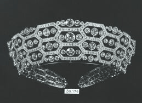 2018年,尤金妮公主(Eugénie d’York)在大婚典礼上佩戴一顶镶嵌一颗瞩目的凸圆形祖母绿和钻石的华丽冠冕,即是Boucheron宝诗龙1919年打造的著名冠冕。这顶曾属于尤金妮公主曾祖母的冠冕,历经一个世纪之后, 首次在公众面前亮相。