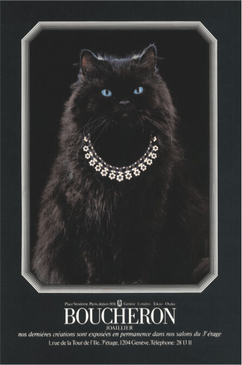 1979年,一只名为Wladimir的黑色波斯猫首次成为百年珠宝世家Boucheron宝诗龙的宠猫。宠猫Wladimir象征着Boucheron宝诗龙自1858年创立以来对动物主题的热爱。