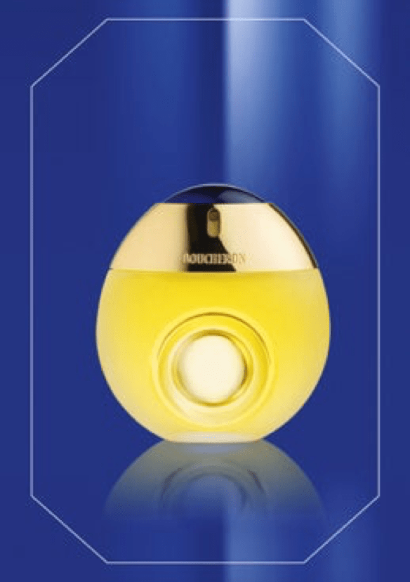 1988年,Boucheron宝诗龙推出了其首款女士香水作品,香水瓶身镶嵌一枚凸圆形蓝色蓝宝石作为装饰,灵感源自品牌经典戒指。