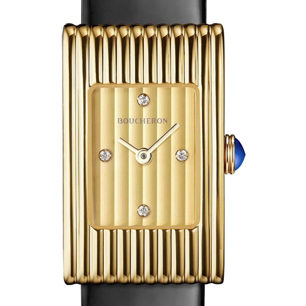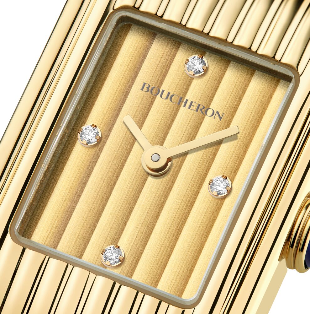 Reflet腕表采用于1944年获得专利的创新隐藏式表扣,与表壳巧妙融为一体。当时,制表行业普遍运用传统针扣将腕表固定于腕间。Boucheron宝诗龙以名为“滑动式锁扣”的机制替代传统针扣,令表带设计焕然一新,既美观大方,亦佩戴舒适。