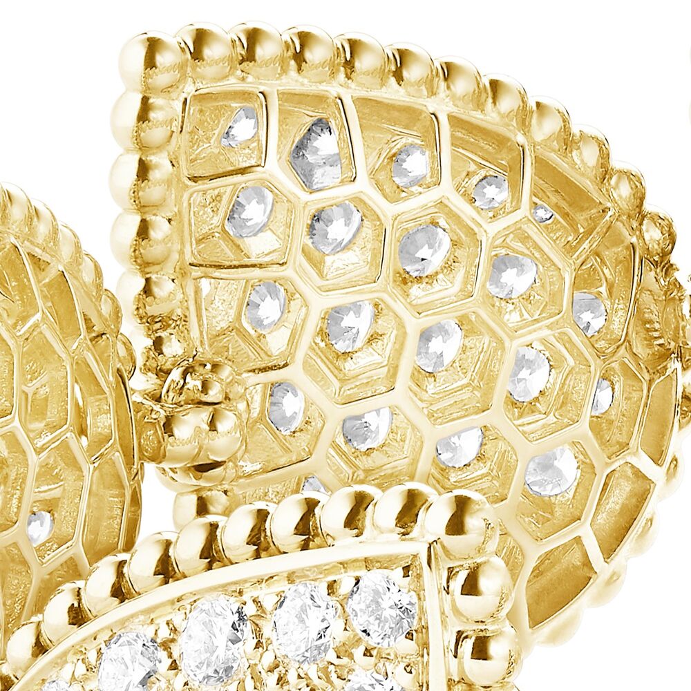 Serpent Bohème系列作品作为彰显精湛高级珠宝工艺的典范,隐匿之处亦经过精心雕琢。水滴图案背面经镂空雕琢,呈现镂空的蜂巢设计,更加突显钻石的璀璨光芒。