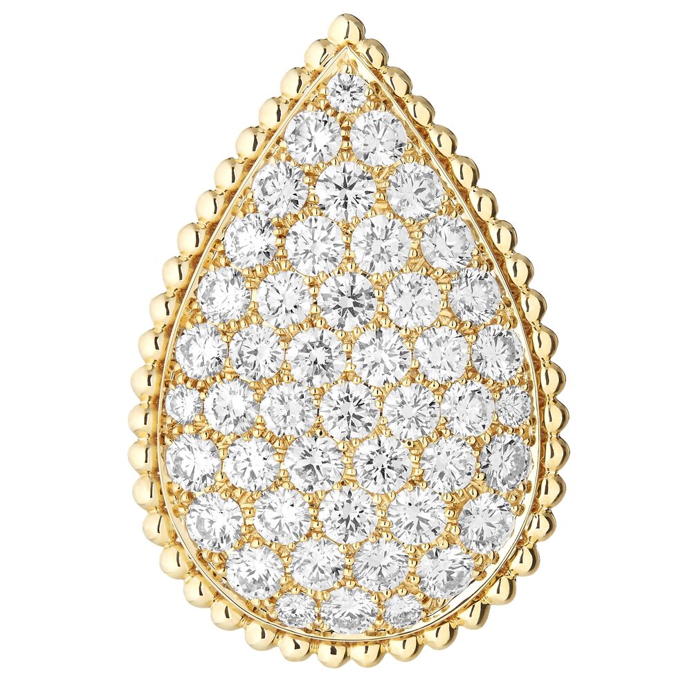 Serpent Bohème水滴图案是此系列的象征,其流畅造型象征蛇首。这一水滴图案最初铺镶钻石,并以华丽金珠簇拥四周。此后,该系列不断推陈出新,水滴图案也演绎出不同尺寸,点缀缤纷绚丽的珍贵宝石,更推出各种新颖的佩戴方式。