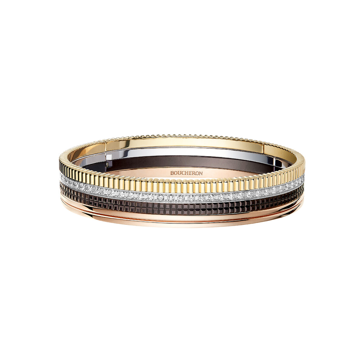 首枚Quatre系列戒指于2004年面世。源自Boucheron宝诗龙历史档案的四种标志性图案,彼此看似不同却融为一体,流露独树一帜的美感。别具几何风格与都市气息的Quatre系列应运而生,成为Boucheron宝诗龙的现代经典之作。