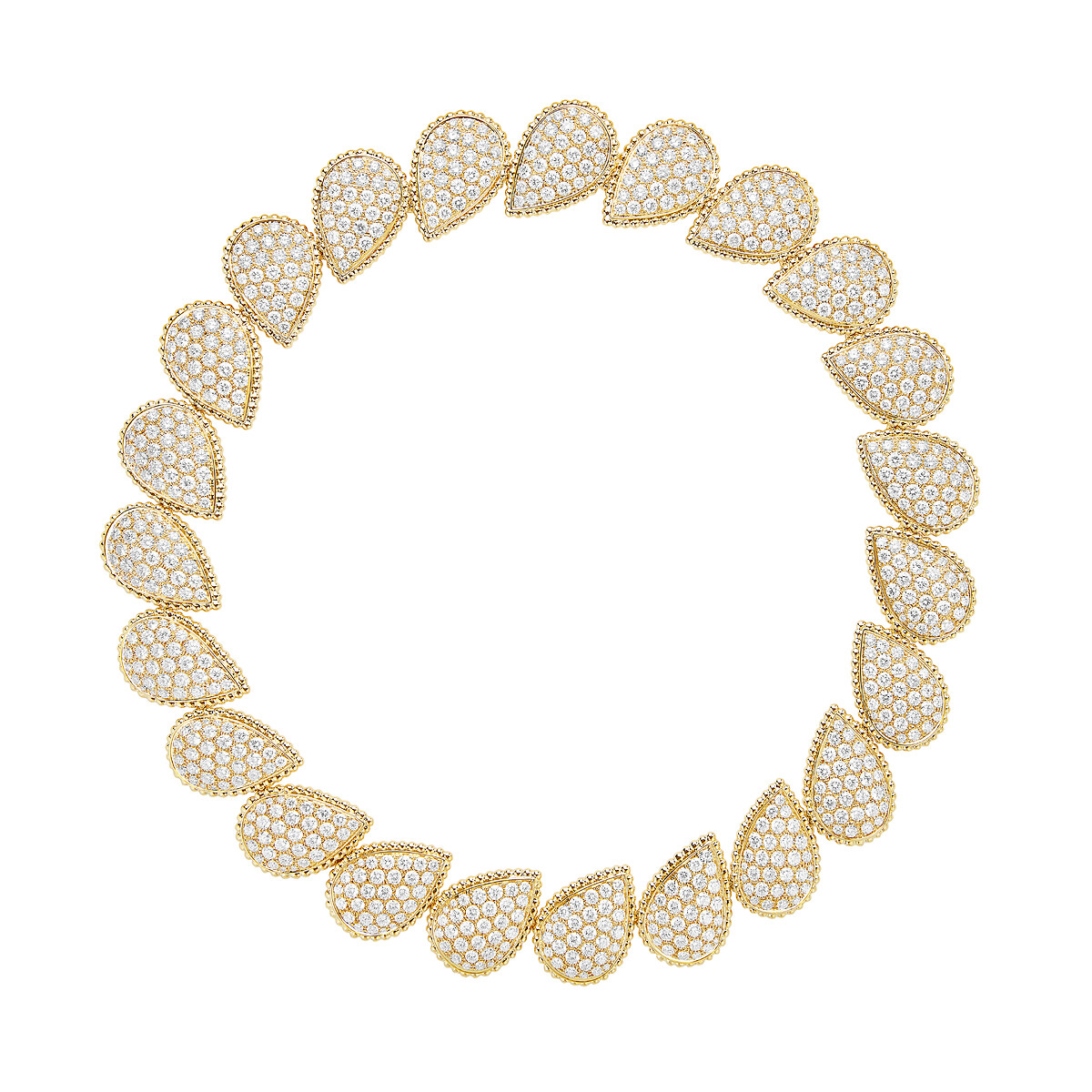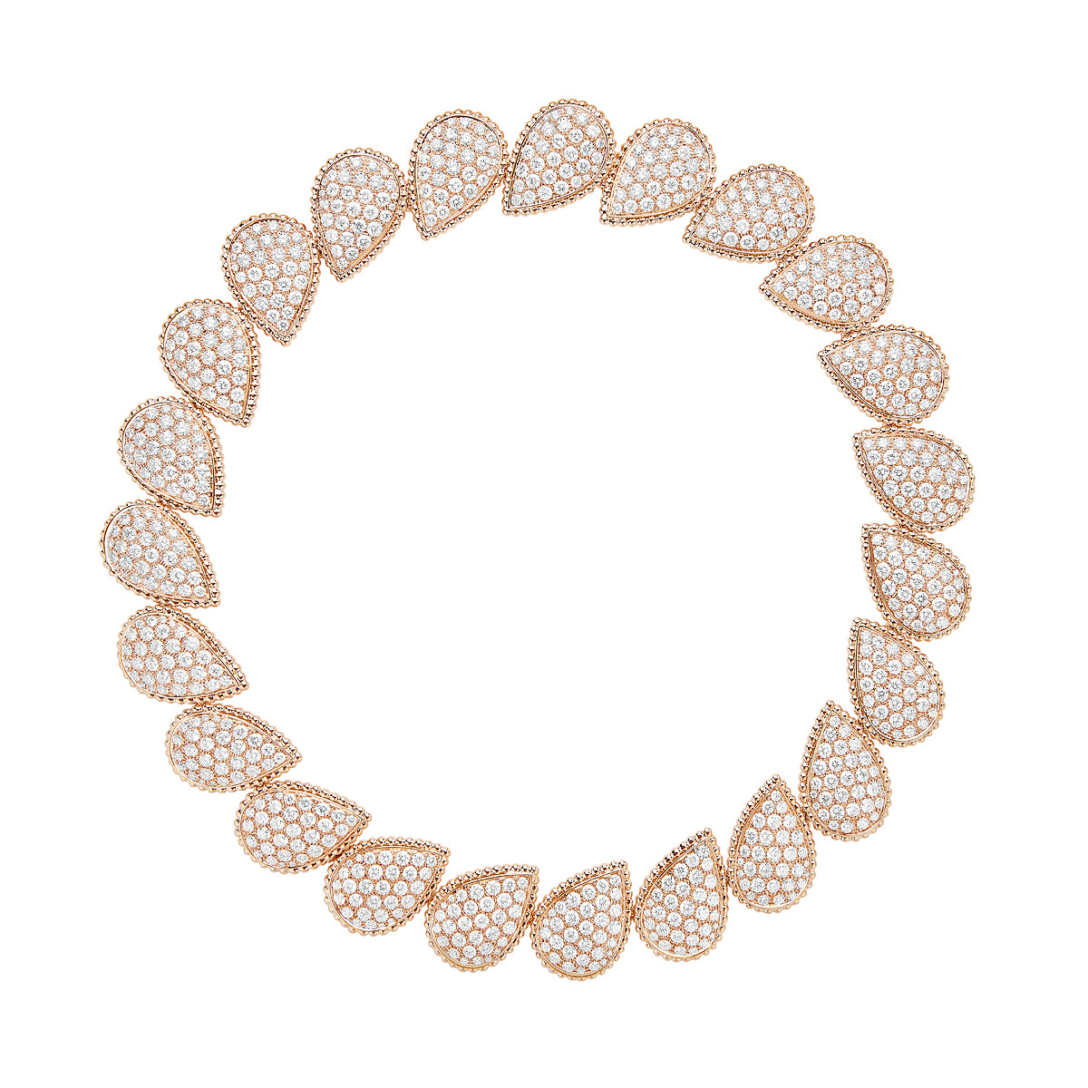 这款Serpent Boheme白金项链淋漓彰显这一系列的标志风格。23个铺镶钻石图案堆叠构成蜂巢造型,凸显优雅动人的水滴形图案。